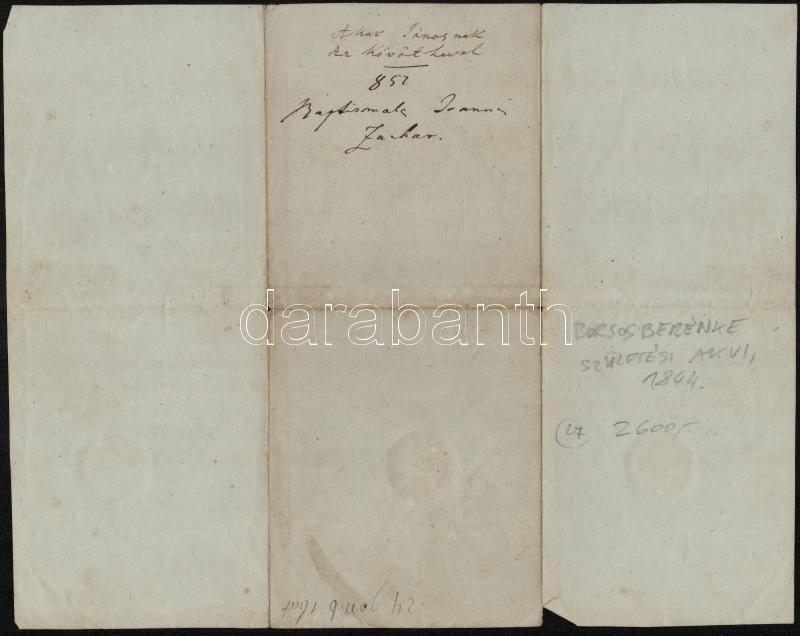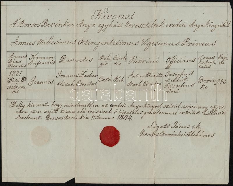 https://www.darabanth.com/en/311-Online-auction/311.0/Other-collectibles/Documents~300016/1844-Borsosberenke-Anyakonyvi-kivonat-viaszpecsettel~II1701468