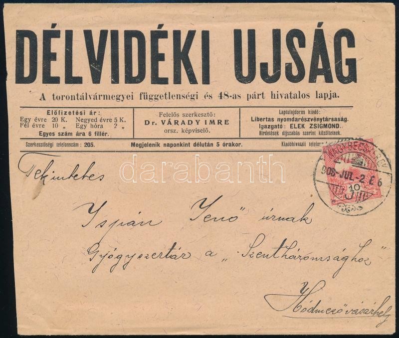 1908 Délvidéki Újság fejléces levele eredeti borítékjával Ispán Jenő h...