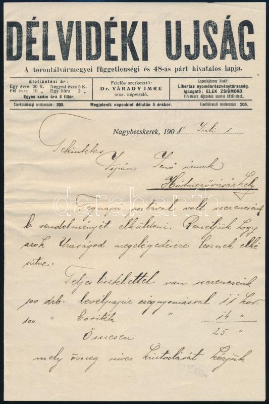 https://www.darabanth.com/en/311-Online-auction/311.0/Other-collectibles/Documents~300016/1908-Delvideki-Ujsag-fejleces-levele-eredeti-boritekjaval-Ispan-Jeno-hodmezovasarhelyi~II1702467
