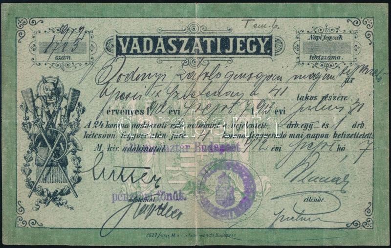 https://www.darabanth.com/en/311-Online-auction/311.0/Other-collectibles/Documents~300016/1912-Vadaszati-jegy-ujpesti-lakos-reszere-pecsettel-alairasokkal-Hunter-licence~II1699761