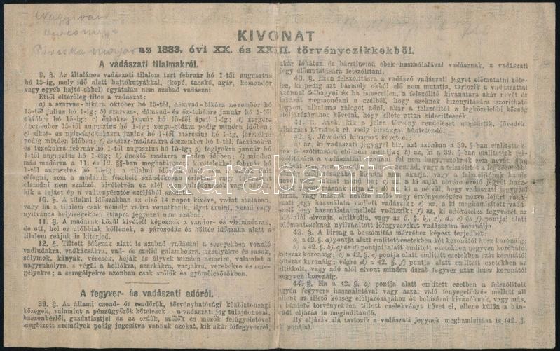 1912 Vadászati jegy újpesti lakos részére, pecséttel, aláírásokkal. / ...
