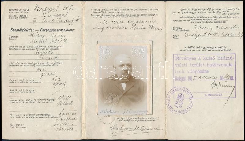 1915 Fényképes igazoló jegy, kocsmáros részére, magyar és német nyelve...