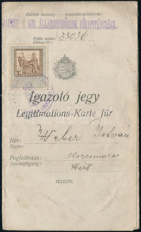 https://www.darabanth.com/en/311-Online-auction/311.0/Other-collectibles/Documents~300016/1915-Fenykepes-igazolo-jegy-kocsmaros-reszere-magyar-es-nemet-nyelven-2-k-okmanybelyeg~II1702155