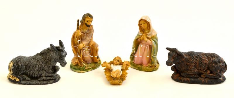 Betlehemes műanyag figurák, 5 db, h: 5 és 9 cm között