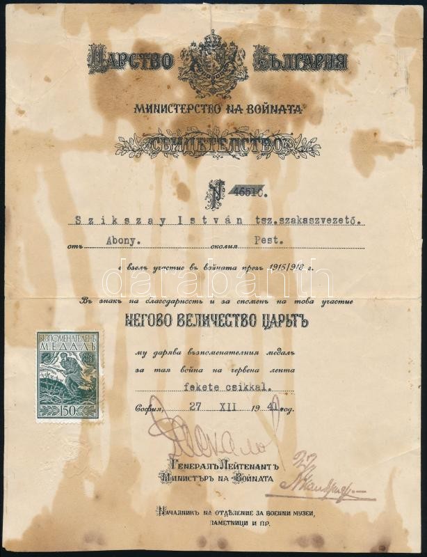 https://www.darabanth.com/en/311-Online-auction/311.0/Other-collectibles/Military~300026/1940-Bolgar-I-vilaghaborus-emlekerem-okmanya-Bulgarian-World-War-I-medal-warrant~II1702436