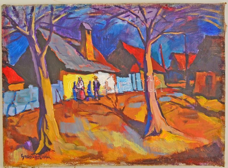 Nagy jelzéssel: Utca részlet. Olaj, vászon, 55×75 cm
