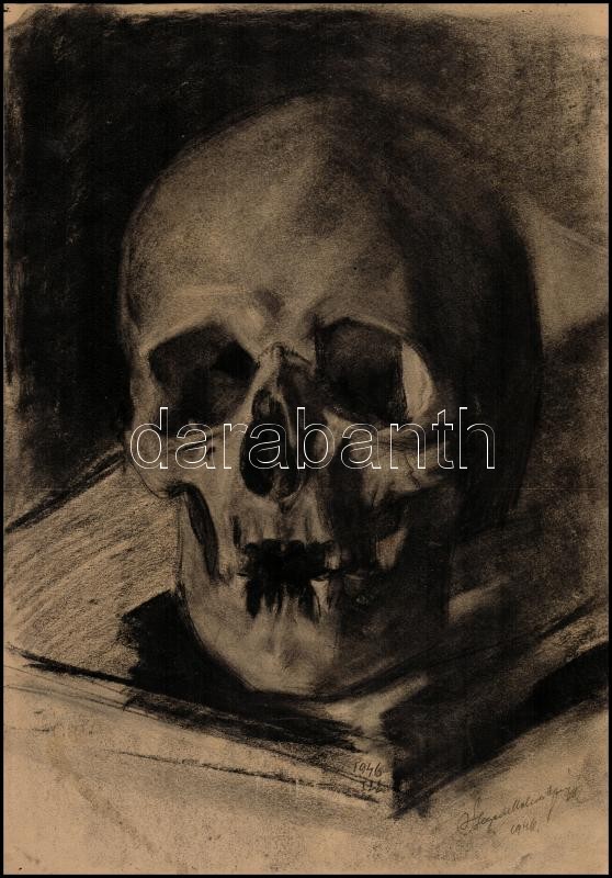 Szegedi Molnár Géza (1906-1970): Koponya. Szén, papír, jelzett, sarkain kis szakadással, 43x30,5 cm