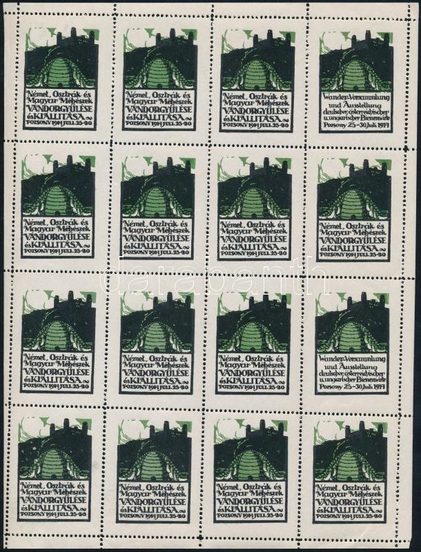 1914 Pozsonyi méhészeti vándorgyűlés és kiállítás 16 db-os levélzáró kisív benne 2 német és 14 magyar nyelvű levélzáró