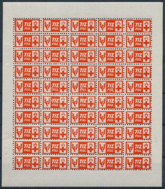 1940 Vöröskereszt 10f adománybélyeg 50-es ívben