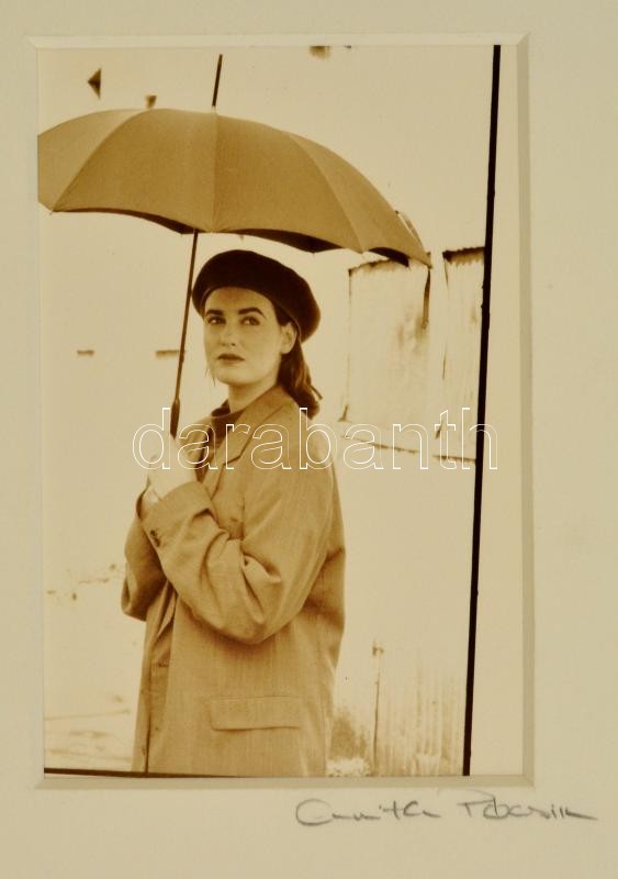 Pócsik Anita (?- ): Esernyővel, jelzett fotó, paszpartuban, 11,5×7,5 c...