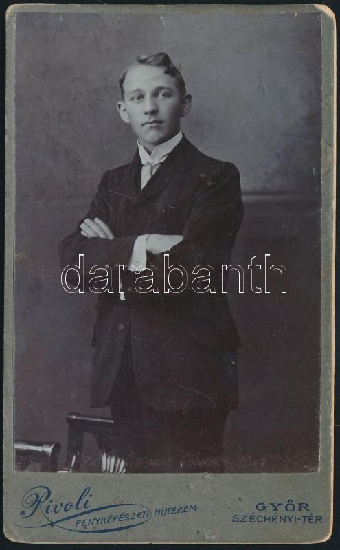 cca 1900 Győr, Férfi műtermi portréja, keményhátú fotó Rivoli műterméb...
