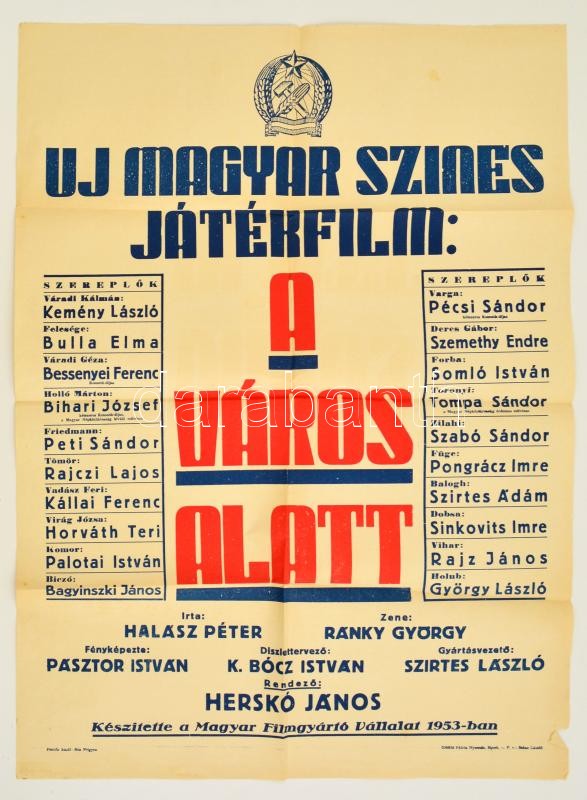 https://www.darabanth.com/en/311-Online-auction/311.0/Other-collectibles/Poster~300028/1953-Uj-magyar-szines-jatekfilm-A-varos-alatt-plakat-Patria-Nyomda-hajtott-szakadassa~II1700923