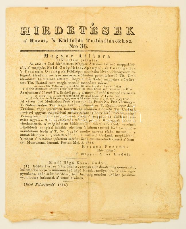 https://www.darabanth.com/en/311-Online-auction/311.0/Other-collectibles/Printed-Materials~300050/1831-Hirdetesek-a-Hazai-s-Kulfoldi-Tudositasokhoz-4-p~II1697931