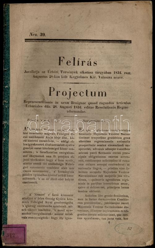 1834 "Felírás. Javallatja az Úrbéri Törvények alkotása tárgyában 1834.... https://www.darabanth.com/en/311-Online-auction/311.0/Other-collectibles/Printed-Materials~300050/1834-Feliras-Javallatja-az-Urberi-Torvenyek-alkotasa-targyaban-1834-eszt-augusztus-28-k~II1695110