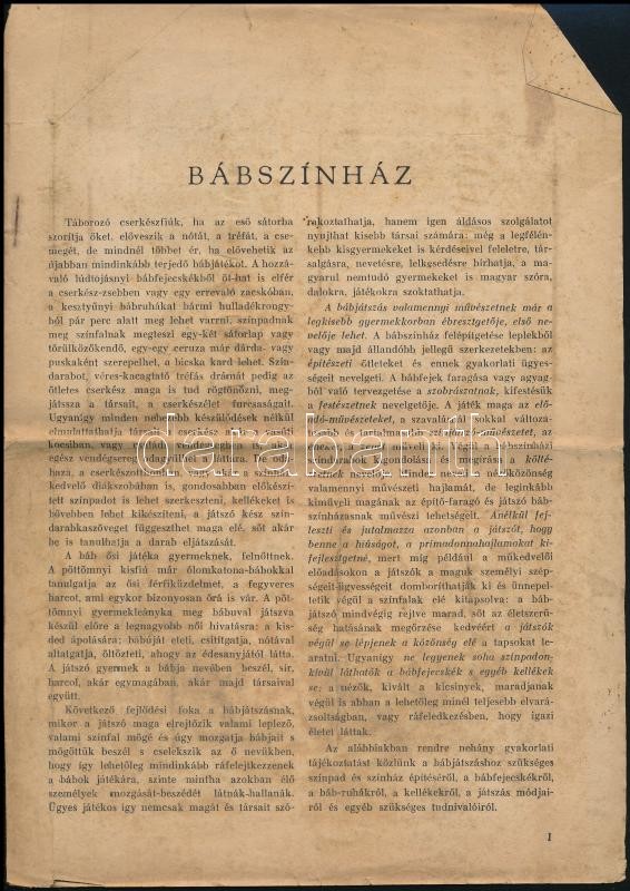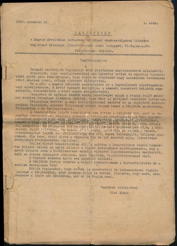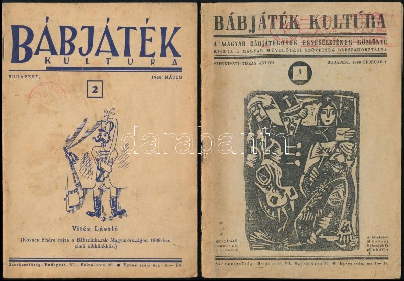 1947-1948 A Bábjáték Kultúrája, a Magyar Bábjátékosok Egyesületének Kö... https://www.darabanth.com/en/311-Online-auction/311.0/Other-collectibles/Printed-Materials~300050/1947-1948-A-Babjatek-Kulturaja-a-Magyar-Babjatekosok-Egyesuletenek-Kozlonye-I-evfolya~II1698434