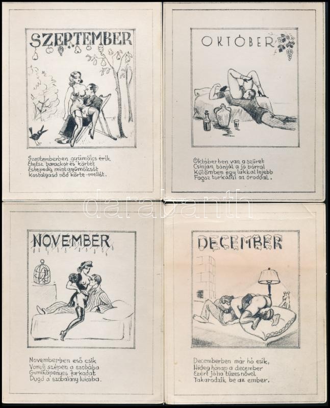 Pornónaptár, erotikus illusztrációk hónaponként, pajzán versikékkel, g...