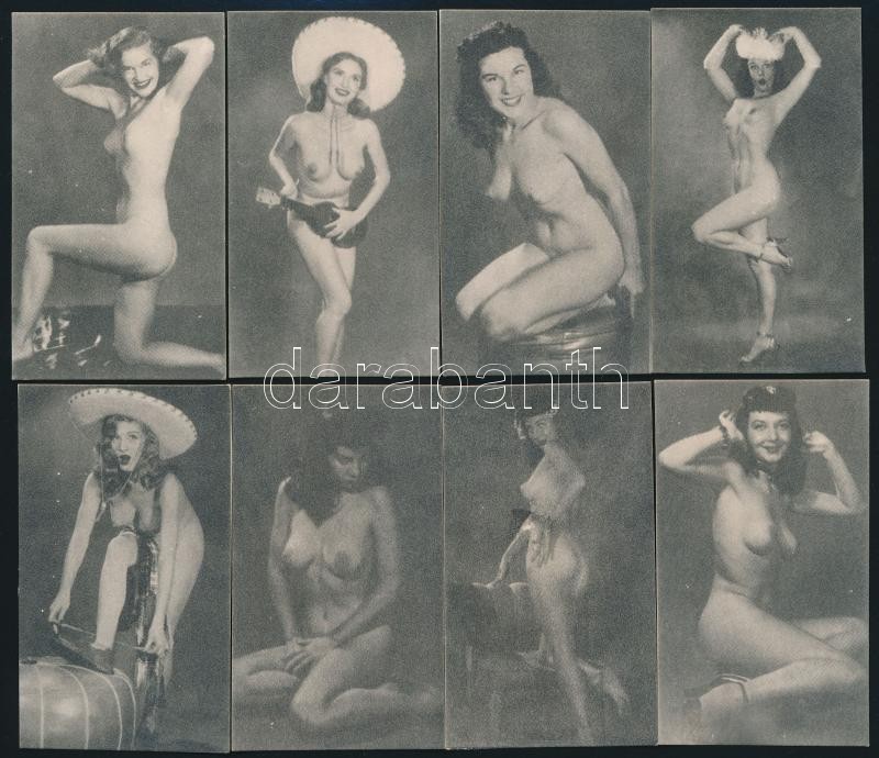 cca 1960 Hölgyeket ábrázoló erotikus nyomtatvány, 8 db, 8x4,5 cm