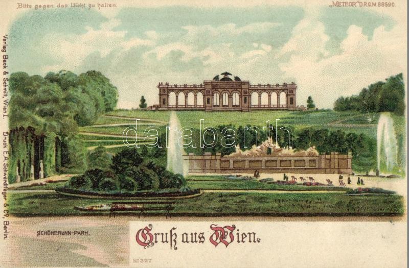 1899 Vienna, Wien XIII. Schönbrunn Park. Verlag Back & Schmitt. Druck E. A. Schwerdtfeger & Co. No. 327. hold to light Art Nouveau litho