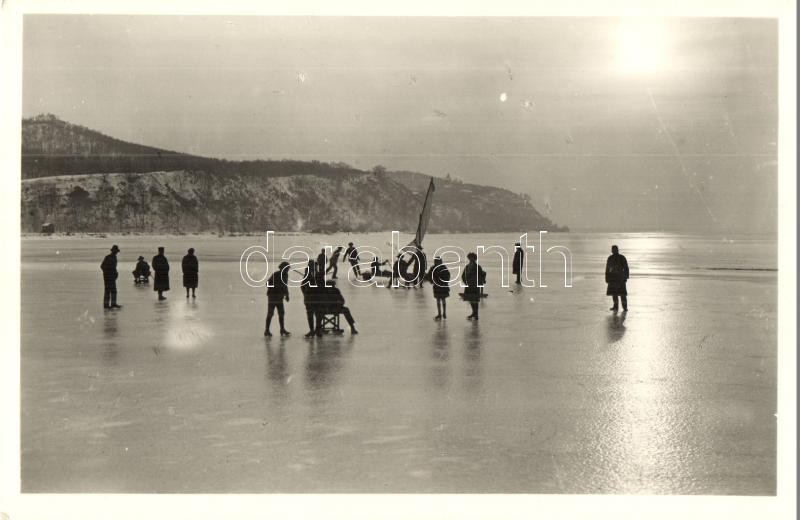 Balaton, Téli sportélet a befagyott Balatonon, fakutya, jégvitorlás (E...