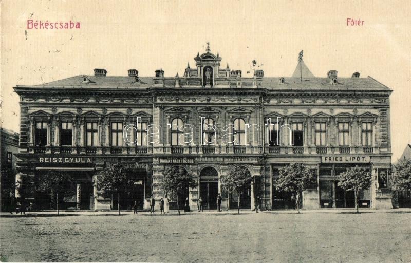 Békéscsaba, Fő tér, Fried Lipót és Reisz Gyula üzlete, Húscsarnok, Cor...