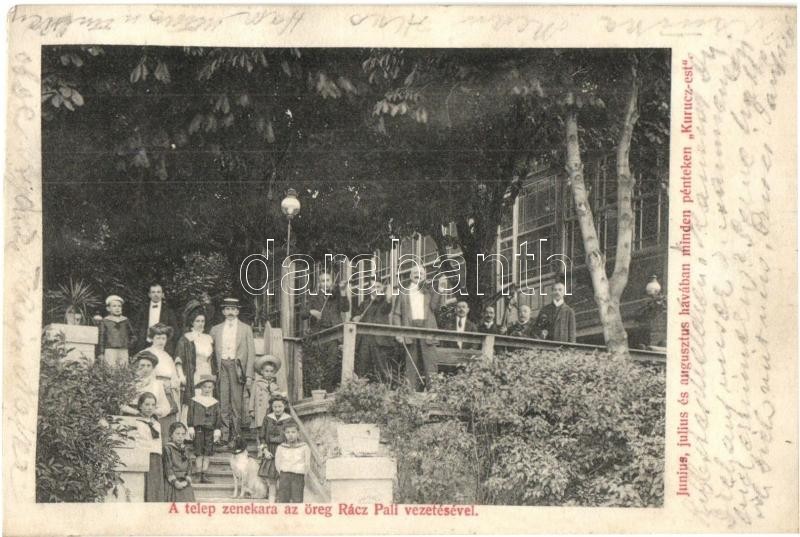 Budapest II. Hűvösvölgy, Holtzspach-féle Vigadó az Orvvadászhoz, a telep zenekara az öreg Rácz Pali vezetésével (r)