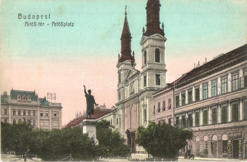 Budapest V. Petőfi tér, Petőfi szobor, Lang Manóné üzlete (EK)