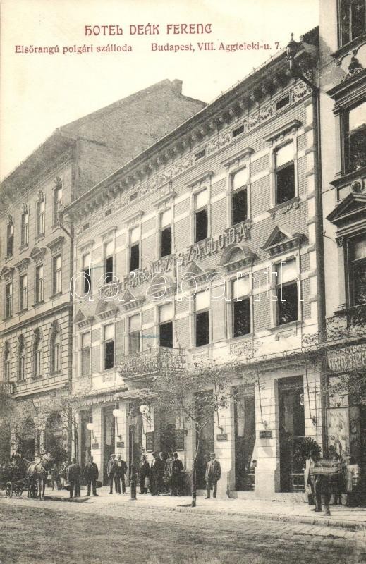 Budapest VIII. Aggteleki utca 7. (ma Kenyérmező utca) Hotel Deák Ferenc, elsőrangú polgári szálloda (EK)