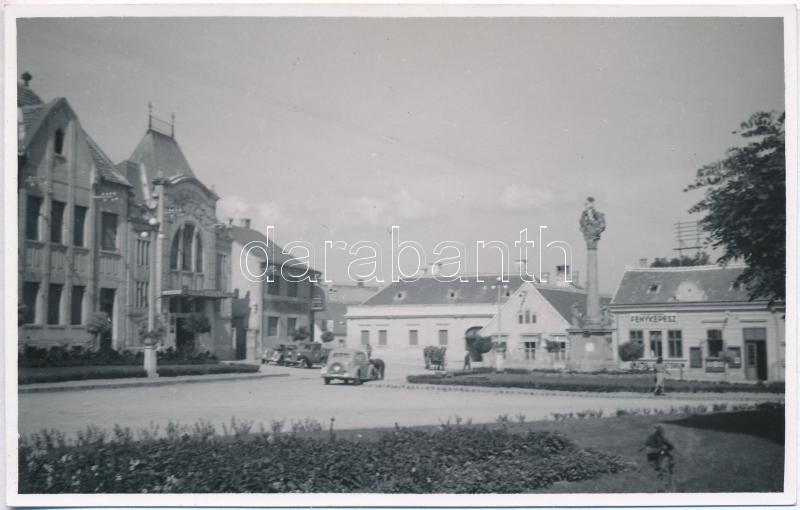 Keszthely, Andrássy tér, Uránia filmszínház, mozi, automobilok, fényképész üzlete. photo