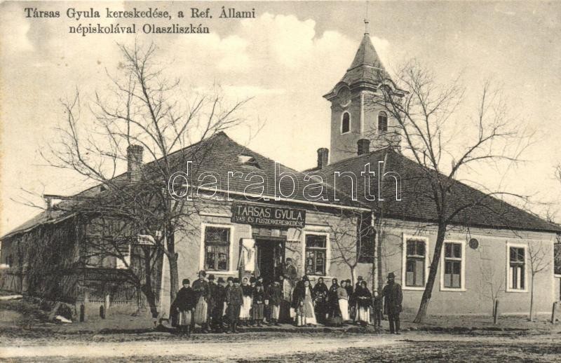 Olaszliszka, Református állami népiskola, Társas Gyula kereskedése és ...