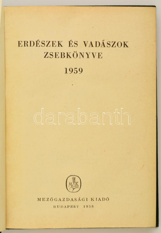 Erdészek és vadászok zsebkönyve 1959. Bp., 1958, Mezőgazdasági Kiadó. ...