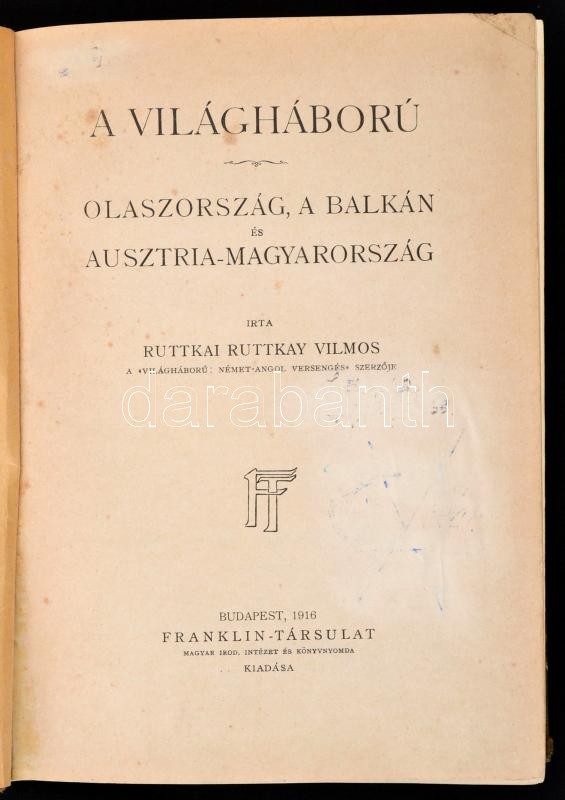 Ruttkai Ruttkay Vilmos: A világháború. Olaszország, a Balkán, és Auszt... https://www.darabanth.com/en/312-Online-auction/312.0/Books/Books-Military~300005/Ruttkai-Ruttkay-Vilmos-A-vilaghaboru-Olaszorszag-a-Balkan-es-Ausztria-Magyarorszag-Bp-1~II1705035