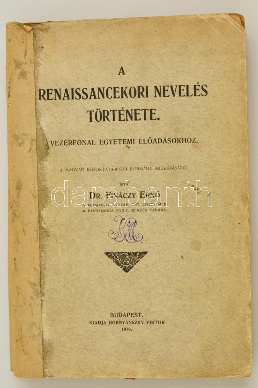 Dr. Fináczy Ernő: A renaissancekori nevelés története. Vezérfonal egye... https://www.darabanth.com/en/312-Online-auction/312.0/Books/Books-Social-sciences~300010/Dr-Finaczy-Erno-A-renaissancekori-neveles-tortenete-Vezerfonal-egyetemi-eloadasokhoz-Bp~II1626988
