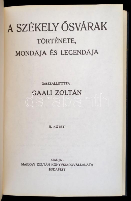 A székely ősvárak története, mondája és legendája. I-II. kötet. Bp.-Cs...