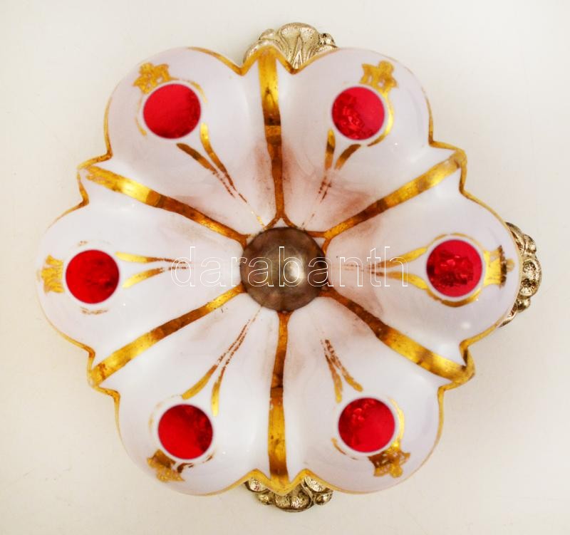 Antik ezüst (Ag) fűszertartó festett üveg betéttel, kopott, jelzett (1852), 10×10 cm bruttó:115 g / Antique silver spice holder, hallmarked