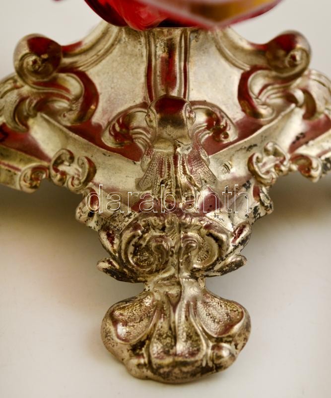 Antik ezüst (Ag) fűszertartó festett üveg betéttel, kopott, jelzett (1...