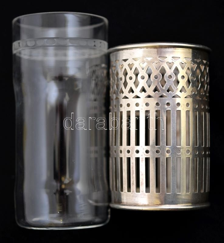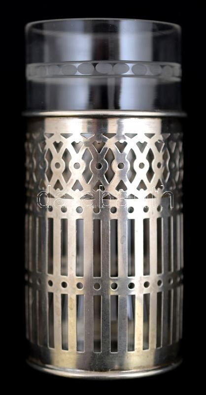 Ezüst (Ag.) áttört szélű váza üveg betéttel, jelzett, hibátlan, nettó: 38 g, m:8 cm