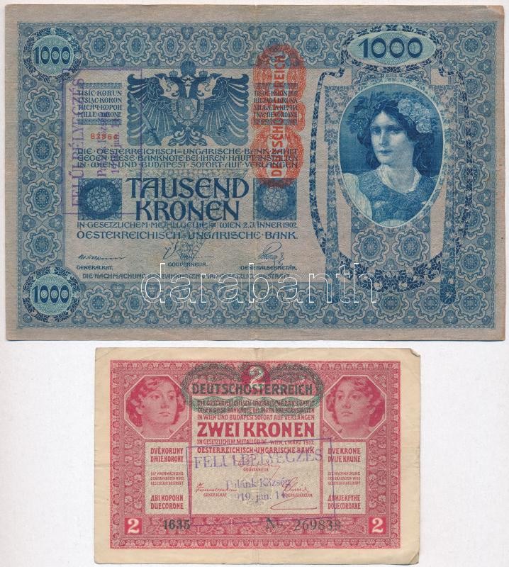 https://www.darabanth.com/en/312-Online-auction/312.0/Numismatics/Hungarian-Banknotes~400007/1902-1000K-plus-1916-1K-mindharom-Deutschosterreich-felulbelyegzessel-es-hamis-Felulbelyeg~II1708084