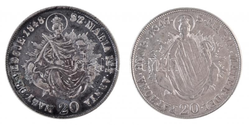1847B 20kr Ag + 1848KB 20kr Ag "V. Ferdinánd" T:2,2- patina,juszt.