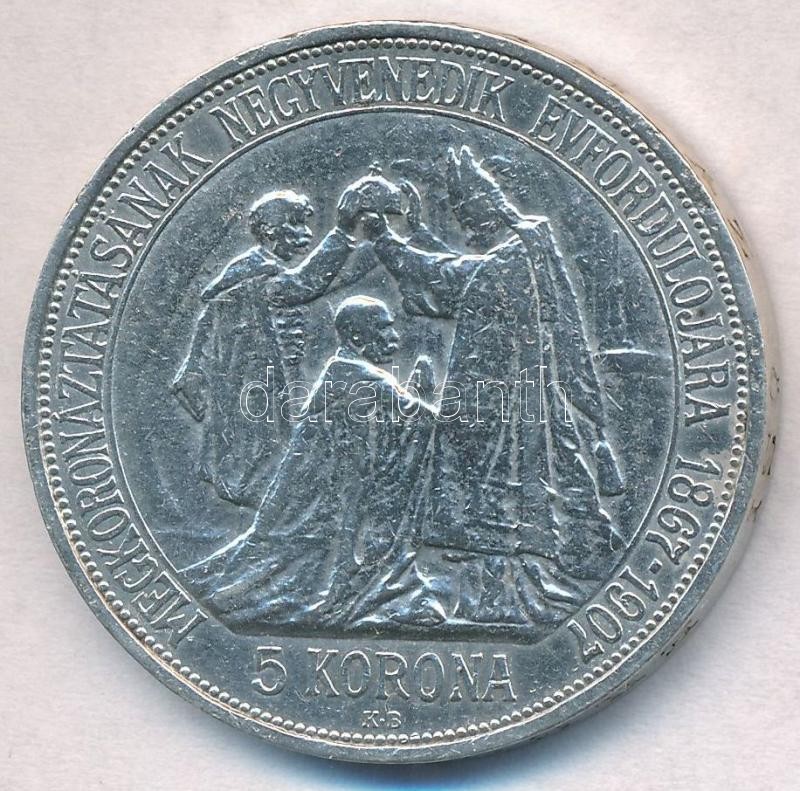 https://www.darabanth.com/en/312-Online-auction/312.0/Numismatics/Hungarian-coins-and-coins-with-Hungarian-mint-marks~400008/1907KB-5K-Ag-Ferenc-Jozsef-koronazasanak-40-evforduloja-T2-2---Adamo-K71~II1704780