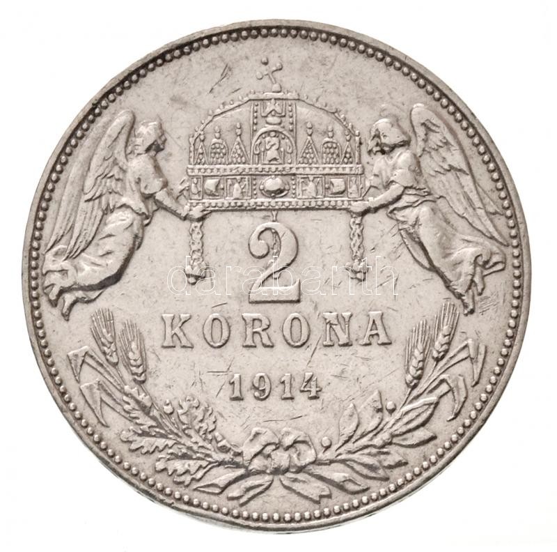 Hungary 1914KB 2 Korona Ag "Franz Joseph" C:XF