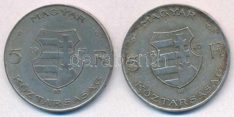 https://www.darabanth.com/en/312-Online-auction/312.0/Numismatics/Hungarian-coins-and-coins-with-Hungarian-mint-marks~400008/1947-5Ft-Ag-Kossuth-2x-T2-patina~II1706374