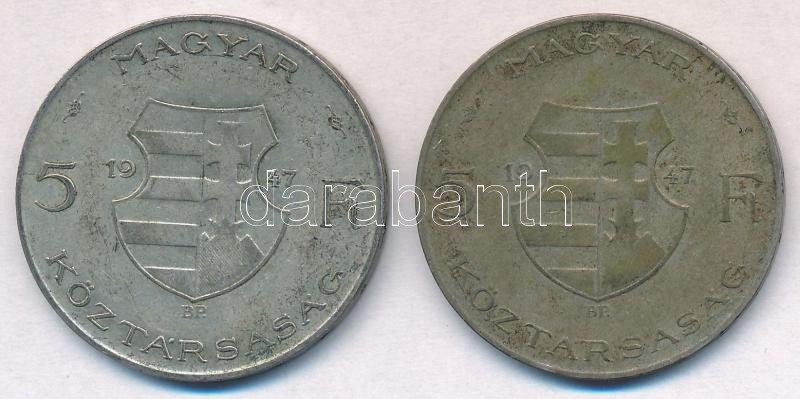 1947. 5Ft Ag "Kossuth" (2x) T:2- patina