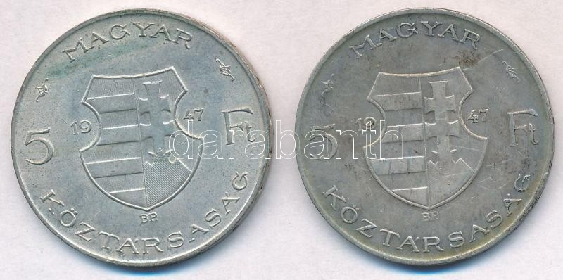 1947. 5Ft Ag "Kossuth" (2x) T:2- patina