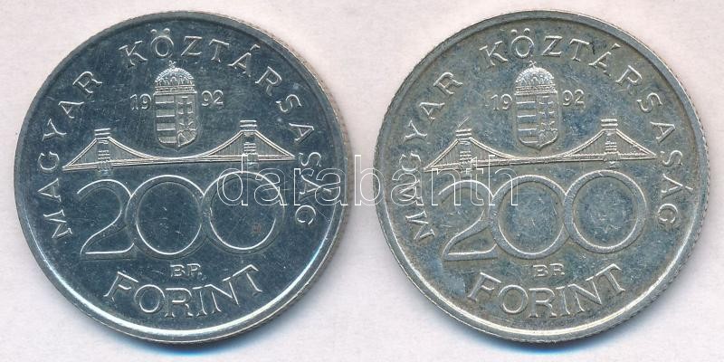 1992. 200Ft Ag "MNB" (2x) T:1-,2 patina
