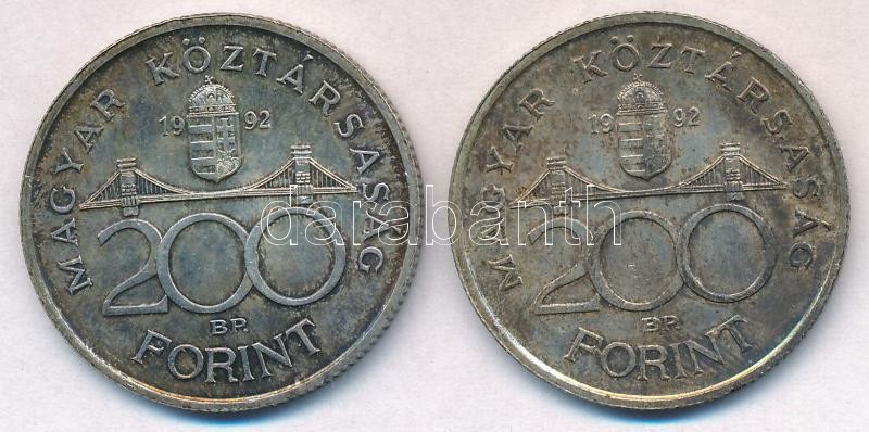 1992. 200Ft Ag "MNB" (2x) T:1-,2 patina
