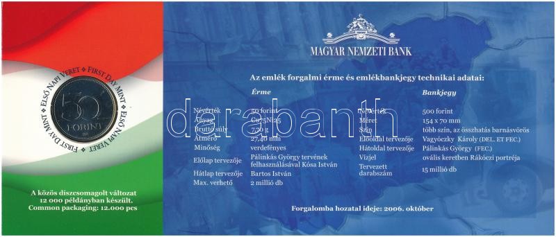 2006. 50Ft Cu-Ni "1956-os forradalom" első napi veret + 500Ft "EB" bankjegy "1956-os forradalom" díszcsomagolásban T:BU,I