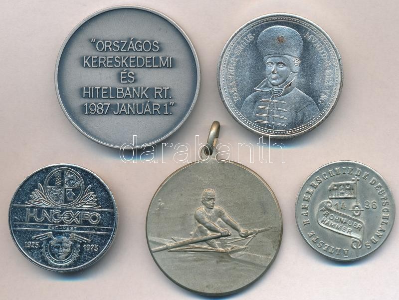 Vegyes 5db-os emlékérem tétel, közte: 1987. "Országos Kereskedelmi és Hitelbank Rt. 1987. Január 1." T:vegyes