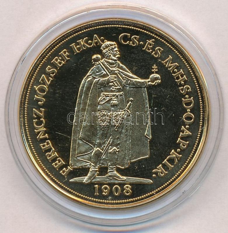 DN "1908. 100K Ferenc József" aranyozott Cu emlékérem "COPY" beütéssel T:PP