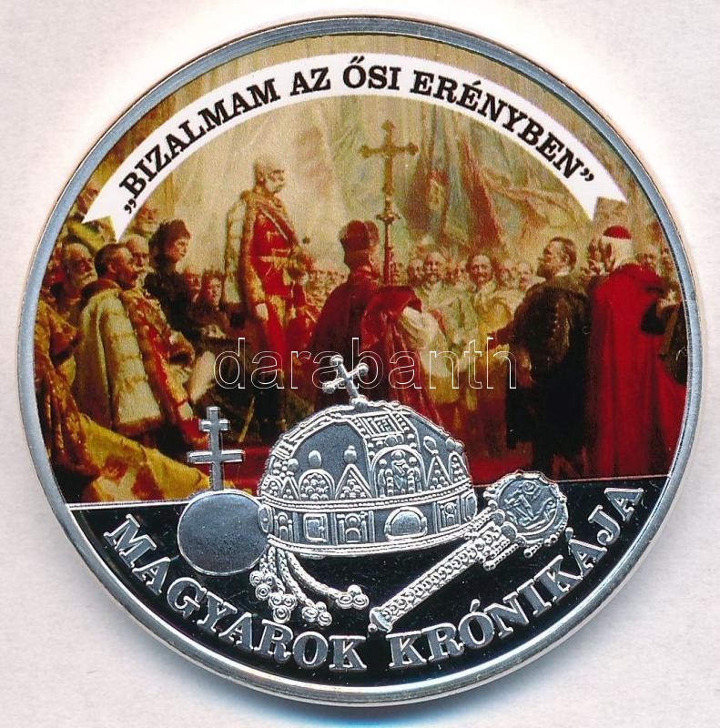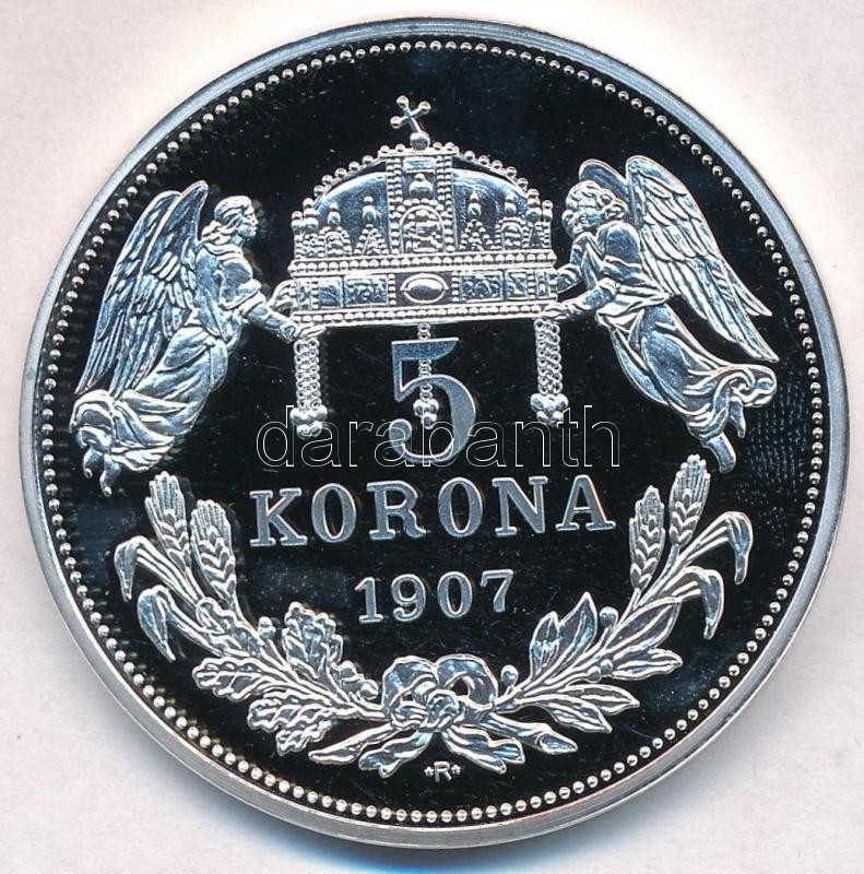 DN "Magyarok Krónikája - Bizalmam az ősi erényben / 1907 5 korona" ezüstözött, multicolor Cu emlékérem (42mm) T:PP