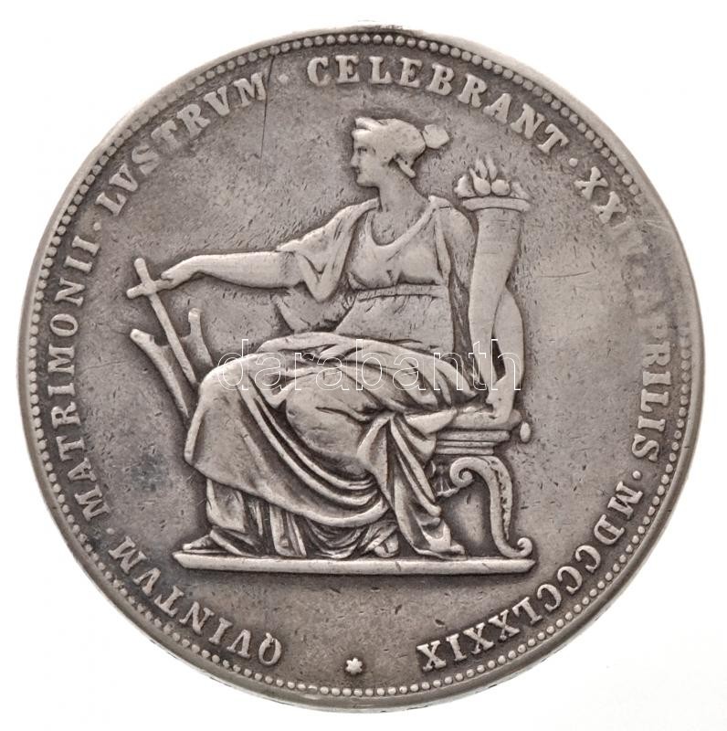 Ausztria 1879. 2G Ag "I. Ferenc József és Erzsébet királynő / Ezü... https://www.darabanth.com/en/312-Online-auction/312.0/Numismatics/Worldwide-silver-and-metal-coins~400013/Ausztria-1879-2G-Ag-I-Ferenc-Jozsef-es-Erzsebet-kiralyno-Ezustlakodalom-24-32g-T2-fC3~II1707359